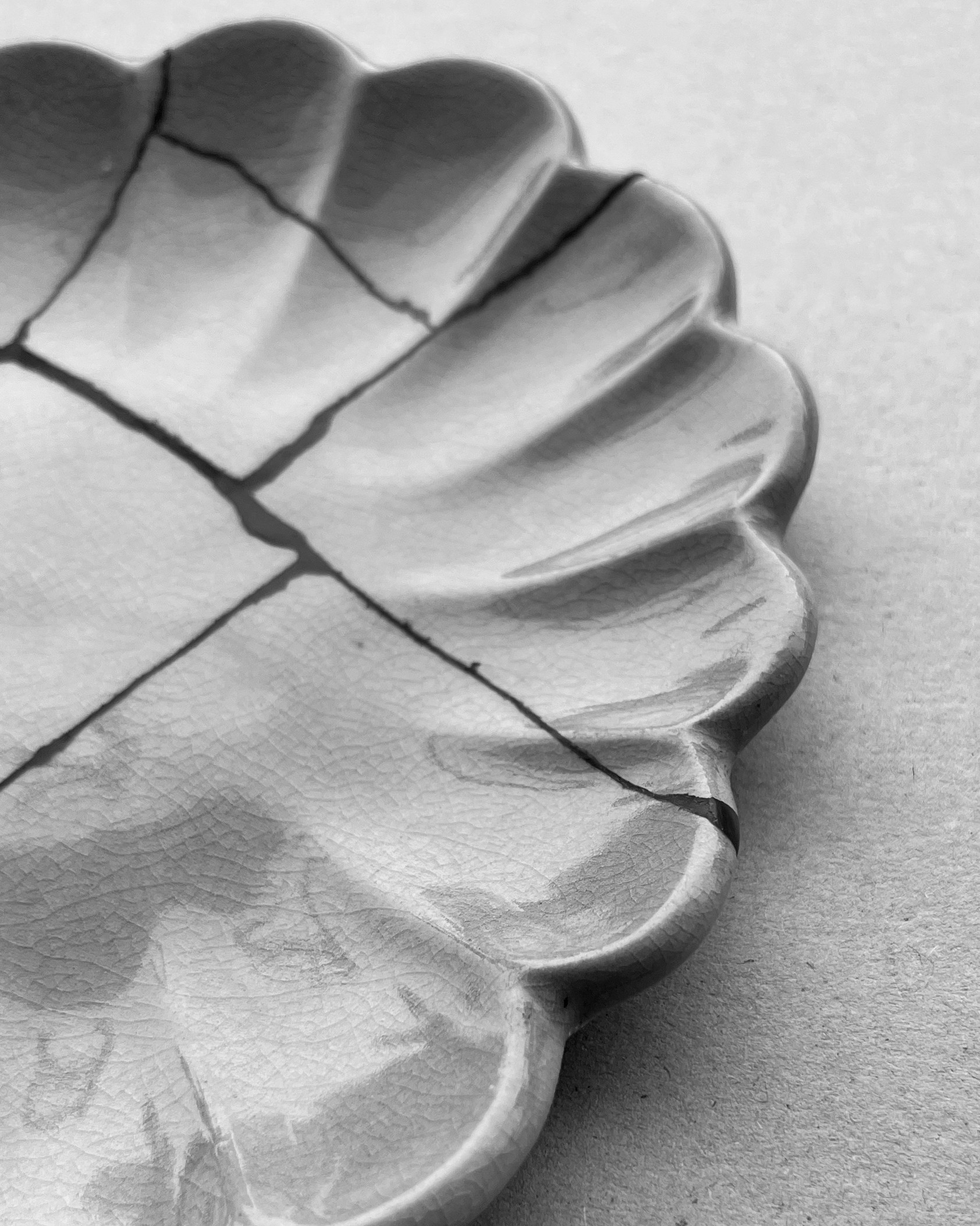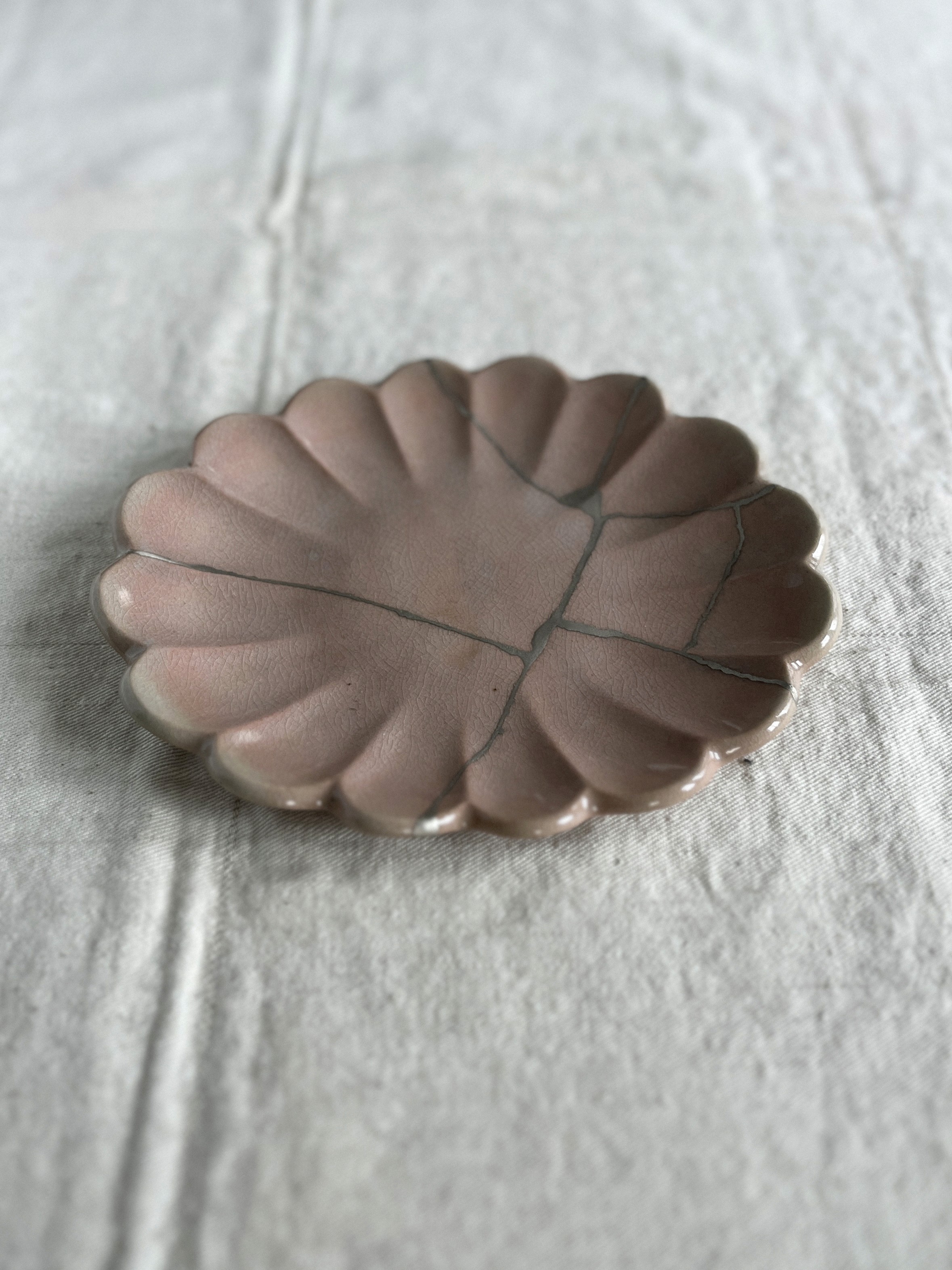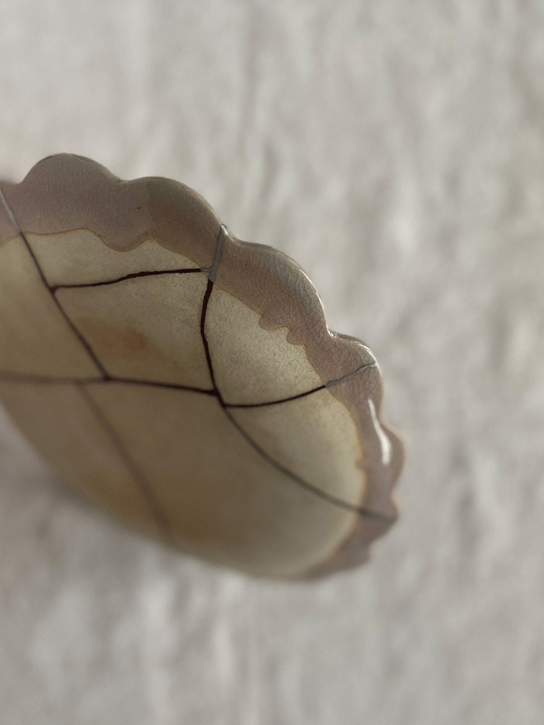 The front has a fine crackle pattern (kannyū), so I applied a thin layer of water glue as a resist to stop urushi from seeping into the surface.